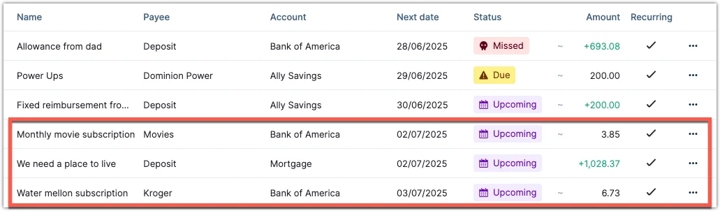 This flexibility allows you to customize your view — whether you want to see all upcoming transactions for the month or just those in the immediate future. Adjusting the upcoming length can help you focus on the most relevant transactions and keep your budget organized.